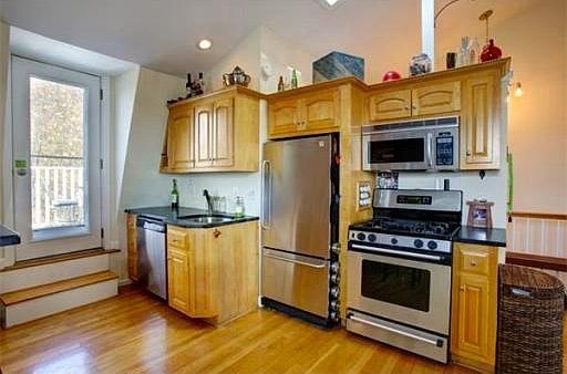 Sunny and renovated two bed penthouse condo across from historic Thomas Park. This unit features an open floor-plan, hardwood floors throughout, cathedral ceilings and skylights. The kitchen includes all stainless steel appliances with a breakfast bar. Enjoy stunning views of the Boston skyline from your private roof deck. With easy access to public transportation and Carson beach just down the street, experience city living at its best. No showings until 3/18/19