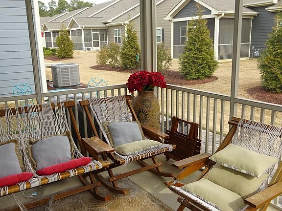 55+ Active-Adult Community! Almost new 2BR, 2.5 BA + office - all on the 1st Floor. Beautiful Open Floor Plan with soaring 14' ceilings! Hardwood floors, kitchen island, white cabinets, SS appl w/gas range. plus granite and custom pull-out shelves! Screened porch & grilling patio out back! 542 sf walk-up floored attic! HOA maintains yard & exterior walls. Clubhouse w/gathering rm, dining rm, full kitchen, fitness studio, conference rm, BBQ area, veranda, fire pit & more. Community garden & 5 parks.