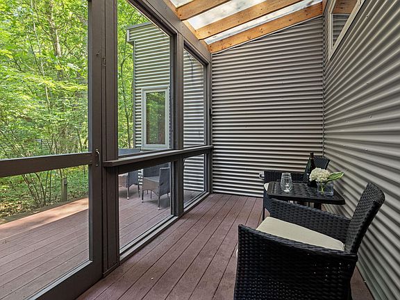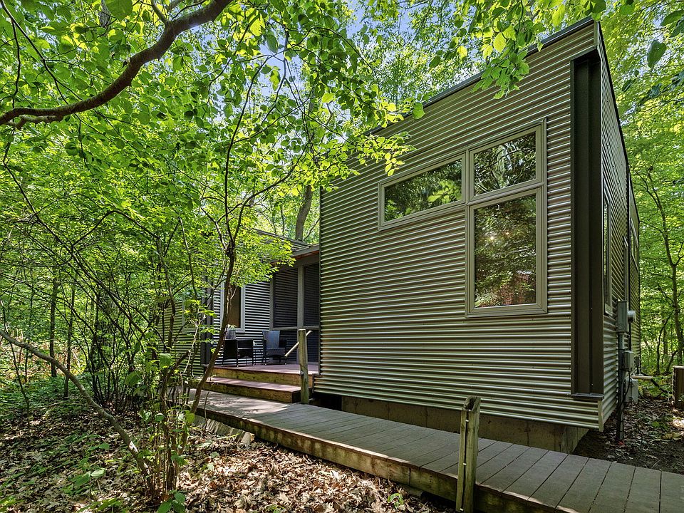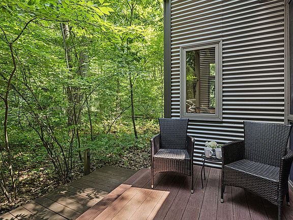 Don't miss this opportunity to live in the highly coveted and conservation-minded community of Tryon Farms. This sophisticated 3 bed / 1 bath modern cabin is tucked into the woods and offers peace, tranquility and privacy. Camping was never this cool. The open concept floor plan, large windows and high ceilings brings the outdoors in. The house boasts three sleeping areas, a screened-in porch perfect for outdoor living as well as a deck. The home is being sold turnkey. Want to embrace the outdoors? Stroll or bike Tryon's 5+ miles of trails spread over 120 acres of shared and preserved woodlands, pasture, meadowlands and pond; or swim in the associations' eco-friendly pool. (Separate membership required.) Located only 65 miles from Chicago's loop and a few miles to the beaches of Lake Michigan, this is the perfect get away. (NOTE: Two of the bedrooms are separated by a partial wall which does not go all the way to the ceiling or have a door which closes. See floor plan for further detail.)