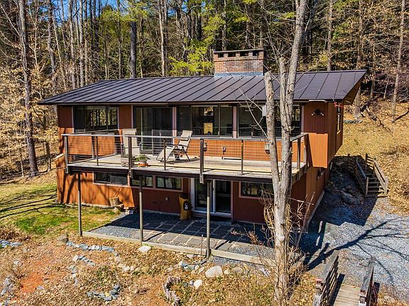 Warm wood, open floor plan, walls of glass, and soaring ceilings are the signature elements of this fully updated original 2-3 bedroom, 2 bath Acorn Deck Home. This midcentury modern achieves the highest level of energy efficiency through design and orientation. Exposed posts and beams, central fire places, and amazing perennial garden views and local views from every window create contiguous open spaces for you and your family to enjoy, while seamlessly blending excellent amenities indoors and out. Indoors you will find a fully renovated cooks kitchen with granite counters as well as new energy efficient windows throughout. Outdoors, you will find the magic of a fantastic deck, did we mention beautiful perennial gardens and terraces as well as your own thoughtfully designed ski glade on the property! There's a relaxed, welcoming vibe to this sunfilled dwelling that’s akin to a luxury adult treehouse. If owning a mid-century modern home privately perched on a sun-filled lot just minutes from downtown Norwich and Hanover is your dream, this listing could make it come true. Note, this property has a two bedroom septic but three rooms that could be used as bedrooms. Open House Sat 4/19 10-12 and Sun 4/20 11-1