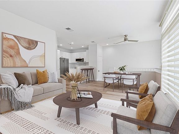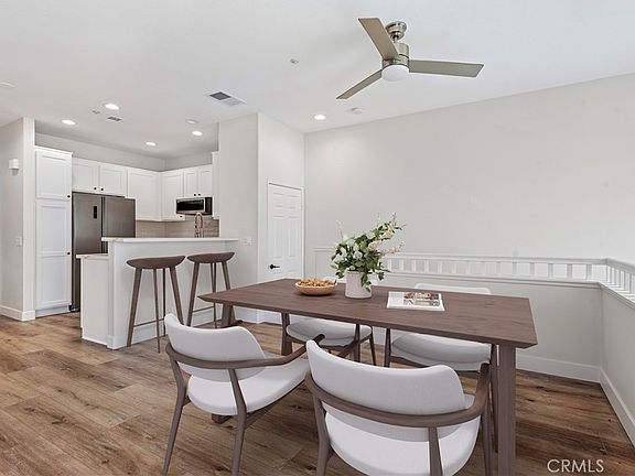 The gourmet kitchen has been thoughtfully designed with quartz countertops, shaker cabinetry, and stainless steel appliances, making it ideal for both everyday cooking and entertaining. The open dining area flows seamlessly into the spacious living room. The primary suite is a bright retreat, complete with a large walk-in closet featuring built-ins and an elegant en-suite bathroom with dual sinks, quartz counters, and stylish lighting. A balcony provides the perfect outdoor escape to enjoy fresh air, morning coffee, or casual dining. The unbeatable location places you just steps from a community park and playground, while nearby award-winning schools, shopping, dining, hiking and biking trails, and entertainment options add to the home's appeal. Easy access to freeways, toll roads, and a short drive to Laguna Beach ensure convenience. This residence also includes a direct-access one-car garage, additional community parking, and plenty of green space to unwind. Refrigerator and washer/dryer are included.