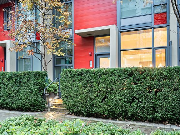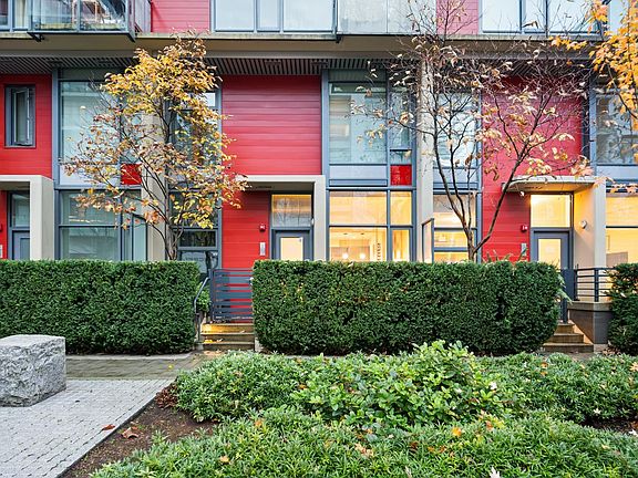 Contemporary design meets everyday function in this rarely available 2 bdrm + office (or 3rd bdrm), 2.5 bathroom, air-conditioned townhome. The home features a terrific layout with floor-to-ceiling windows, hardwood floors, fireplace, premium stainless steel appliances, large kitchen pantry and loads of storage. Upstairs are 2 bdrms incl a primary suite w/spacious walkthrough closet & 5 piece bthrm w/ soaker tub and separate shower. The main floor is where the office or 3rd bdrm can be found with extra room for expansion or storage. Enjoy top-tier amenities including a rooftop infinity pool, hot tub, gym & party room. Steps to the SkyTrain, Seawall, Science World, grocery stores, great cafés & restaurants, dog parks and more! Two side-by-side parking stalls, locker & bike room included.