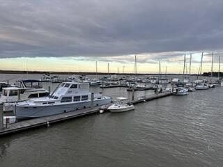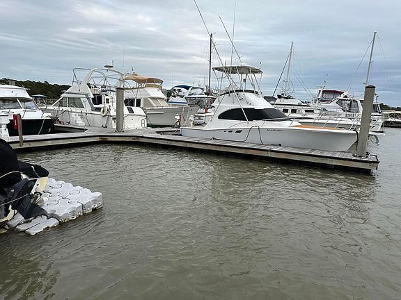 Sunset Cay is one of the most desirable gated marina's in the low country. The slip is 20x 40 and can accommodate a 55 foot boat which has city water and power hook ups and weekend stays are allowed. The regime fee is 750 per quarter with plenty of protection from wake and 20 feet deep at low tide. Gate E is to the right when you go through the security gate protected from wind and storms coming off the ocean. Dock was completely rebuilt a few years ago and rents can be up to 400-500 per month there is scheduled fuel delivery and jetdocks are allowed