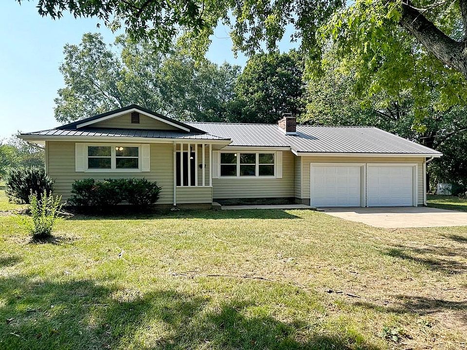 Country Home on 2 Acres m/l near Stockton Lake, Missouri – For sale is a dream property come true at an affordable price. The 2 bed, 1 bath home boasts location, condition, and affordability all in one package. A long driveway places the home on the back half of the property with a great yard view in the front and in the back. The partially shaded lot consists of maple, redbud, and several other species of trees and shrubs giving variety to the landscape. The exterior of the home features vinyl siding and a metal roof for little-to-no maintenance required. The interior is 1,115 sq ft with a fireplace/living room, 2 bedrooms with great closet storage, a full bathroom, a kitchen-dining room combo, and a laundry room. The flooring has all been replaced, and the sellers have added new fixtures and new paint throughout. Bonus features include a 2-car attached garage, a 12’x15’ back deck, and a fantastic 3-seasons room with a great view of the backyard (you will love this room!). Add in the private well and access to fiber internet, and all the boxes are checked on this property. But wait, the location is perfect too. The property is located on a paved county road just over ½ mile to Hwy 39. This property is also on the south watershed of Stockton Lake and access is a mere 2.8 miles away at Son’s Creek ramp. This is a destination home and property for sale near the lake, on a quiet lot, 4 miles to Greenfield, and in turn-key condition. Schedule your showing today!