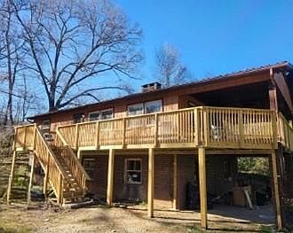 Only 40 minutes from Asheville, NC and 20 minutes from Black Mountain, and surrounded by the beautiful Appalachian Mountains this home is located on an acre lot at the end of a private driveway. This spacious 2-story, 4 bedroom, 2 bath house has been freshly painted and updated with new flooring throughout. A cost-effective pellet stove for heating is one of the recent improvements, along with lovely finishing touches like ceiling fans and designer colors. There's a ton of space, including a large open kitchen with lots of cabinets. Outside you can enjoy the peaceful backyard from the comfort of the fully restored deck!
