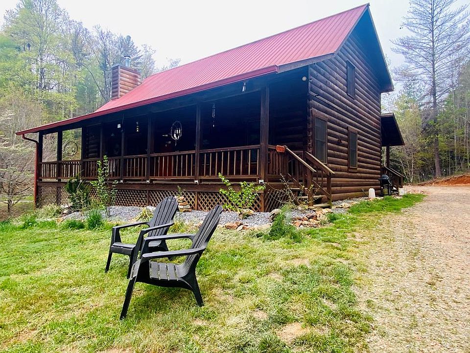 Gorgeous three bedroom two bath cabin located in Murphy. Enjoy the sounds of the babbling Creek while relaxing on your covered porch. With 5.58 unrestricted acres there is plenty to do with this beautiful land as well as enjoying the fruit trees located in the front yard. When you walk into the home the first thing you see is the vaulted ceiling with plenty of natural light. Kitchen is newly remodeled with an industrial touch, master is located on the main floor with walk in closet, and on suite bathroom. This home will not last long take advantage of this rare find, beautiful cabin with large tract of land!