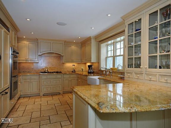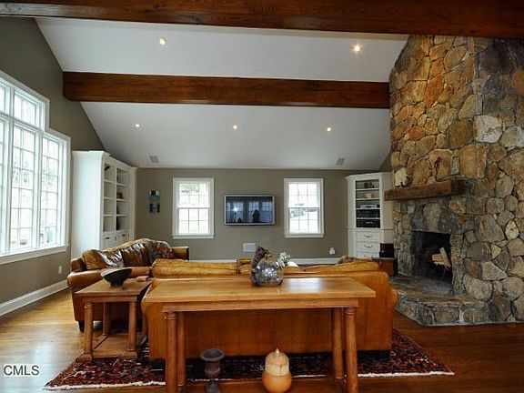 Style, Sophistication & Location, Location, Location!This meticulously maintained and updated 4 bedroom, 2 1/2 bath home is located in a premier Weston neighborhood on 2 nature preserve-quality acres right over the Westport border and only minutes to Westport amenities (shopping, beaches, trains).The home\'s extensive updates include a designer kitchen with Viking/Bosch appliances, granite countertops, a Shaws Original farm sink and custom cabinetry, an expanded, renovated family room with a vaulted, beamed ceiling, a spectacular architectural window, custom built-ins, wide-plank floors and a dramatic floor-to-ceiling flagstone fireplace. All bathrooms have been luxuriously appointed with high-end fixtures and materials. The finished lower level includes a playroom/media room, separate office and laundry room. Benefits include city water, Weston\'s top-rated, single campus school district and rights to Westport private beaches!(square footage includes finished lower level (787sf).)