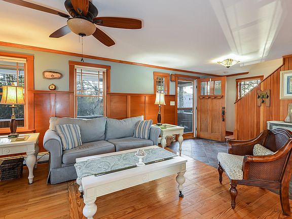 Enjoy this enchanting and impeccable craftsman style 3BR, 2BA Colonial in the desirable Wenaumet Bluff's Association. This lovely 1955 vintage beach house has been meticulously renovated over the years with cherry kitchen cabinets, modern appliances, granites ctrs, restored hardwood floors, natural wood wainscoting, fir trim and some bead board ceilings of yesteryear. The open living room, kitchen and dining area are focused on the hand-crafted river stone gas-log fireplace for enjoying blazing fires. The master bedroom also has an inviting decorative tiled gas-log fireplace and a spacious walk-in closet. A landscaped lot with ample parking and a dog friendly fence-in yard. Plus additional finished studio for guests and work shed. Walk to sandy a association beach.