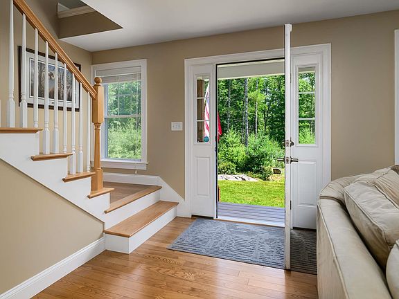 Perched on 3 scenic acres, this impeccably maintained colonial home, built in 2015, boasts a tranquil setting complete with an abundance of fruit trees, meticulously landscaped grounds, and flourishing flower and vegetable gardens. The outdoor space also features a sprawling backyard patio, ideal for hosting gatherings, and direct access to charming woodland trails. Step inside to discover a welcoming open-concept layout on the first floor, comprising a spacious living room, an inviting dining area, and a recently upgraded kitchen. The kitchen is embellished with a stunning quartz-topped island, providing an ideal space for meal preparation and casual dining. A wood-burning stove adds warmth and character during the winter months. Rounding off the main level are a powder room and a convenient laundry area. Upstairs, the second-floor hosts two guest bedrooms, a generous hall bathroom with dual vanities, and a luxurious primary bedroom suite featuring a private bath and a walk-in closet. Additional highlights of this home include a 2-car garage with heated space, hardwood flooring, a hardwired stand-by generator, central air conditioning, radon mitigation system, and a premium water filtration setup. Conveniently located just minutes from downtown York, area beaches, shops, restaurants, and The Ledges public golf course, this property offers a perfect blend of tranquility and accessibility.