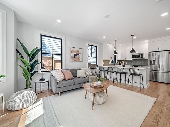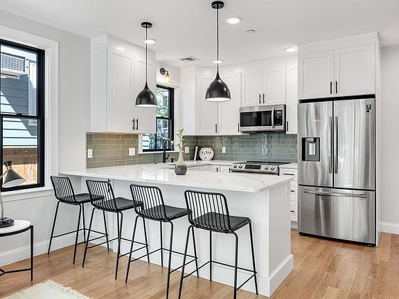 The residences at Sixty Six Wordsworth feature new construction homes with luxe finishes & large private decks. Live comfortably in this spacious 1 bed, 1 bath with private deck, open concept living area with South facing bay window, solid oak hardwood flooring, striking Pella windows, high ceilings, and a bright kitchen with peninsula seating, Calacatta quartz, sage glass backsplash, Samsung appliance package with fully vented range, and a 30-bottle wine refrigerator. The bedroom gets great afternoon sunlight and opens to a private walk-out deck. A spacious bath features a large Statuario porcelain walk-in shower and 48” Carrara marble vanity with extra storage. Additional features include Central HVAC via Ecobee, 27” Samsung washer & vented dryer, Delta Trinsic fixtures, LED lighting, Cat6/cable-ready outlets, and keyless entry. Walk to the Blue Line, restaurants, parks, fitness, the Greenway, Harborwalk, tennis courts & Constitution Beach from this charming tree lined block!