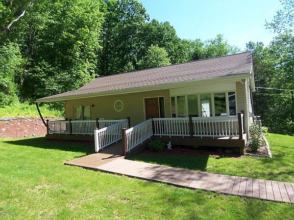 absolutely lovely 2 BR ranch home (newer construction 2015), large master BR with bath suite, wood floors, lovely gas fireplace in LR, granite counter tops in kitchen, lots of cabinets in kitchen, very well built home, large porch for relaxing and watching wildlife or sipping on your favorite beverage, 2 car garage, asphalt driveway, few neighbors but yet close to town, ductless central air, access ramp, call 1st Choice Realty 398-0690 or TEXT Bob Boob at 570-220-0741