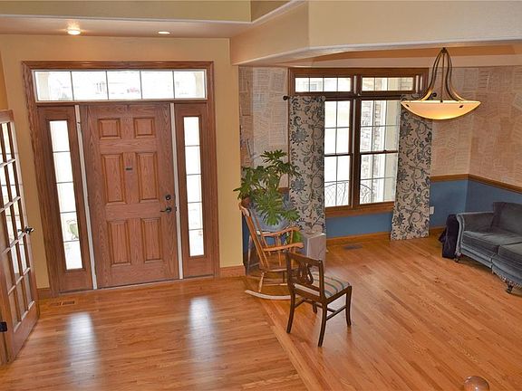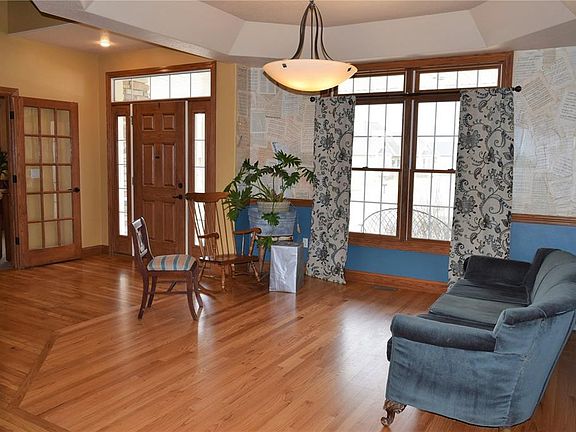 Custom built home in sought after Stonebrook Development. From the outside to the inside this one has it all. 2 story entry area open to formal dining or formal living room w/unique coved ceiling, hardwood floors & built in cabinet, French doors off entry foyer open to office w/built in desks, cabinetry, crown molding & has double sided gas fireplace between office & family room. Transom windows & wrapped gas fireplace in the family room. Kitchen has granite tops, center island/breakfast bar, cook top range, wall ovens & corner pantry. The dining area off the kitchen opens to maintenance free deck that is partially covered & has steps to patio. Step in from garage to storage cubbies for keeping the kiddos organized & laundry room w/folding station & utility sink. 2nd level features 4 BRs, 3 full baths & open hallways w/bonus storage closets. Inviting walkout lower level has 2nd family room, another gas fireplace w/wood mantel & wrapped w/stone, adjoining rec room set up for pool table & game tables w/wall of above grade windows, kitchenette/wet bar, 5th BR, 4th full bath, utility storage room w/adjoining lock off room w/wrapped walls & ceiling. Lower level opens out on to large patio, big back yard & awesome 2 story play house your kids & grand-kids are sure to love. This home backs up to Mt.Vernon School District green space, has a view of beautiful Cornell Campus & offers easy access to Hwy 30 & Hwy 1 making for a quick commute to Cedar Rapids & Iowa City. If you have yet to discover Mount Vernon & Lisbon come check out our vibrant communities that are filled w/history, charm, excitement, hospitality and creativity.