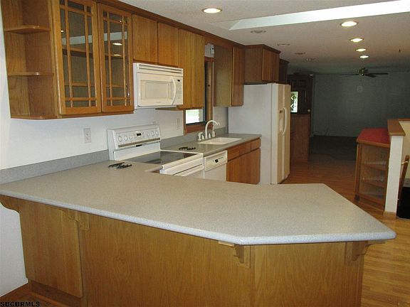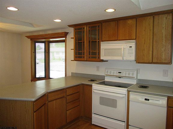 New extra deep 3 car attached garage. Newer kitchen by A&L with lots of cabinets, corian counters, and several skylights & tube lighting throughout main floor. 220 in garage and in enclosed porch which has a hot tub. Home was totally gutted & remodeled in 2002 with new plumbing & electrical. Exterior is brick front, vinyl siding & soffets. Corner lot w/ fenced yard & mature landscaping. Main floor is handicap accessible w/ 36" doors. Laundry in basement could be moved to bath off kitchen.