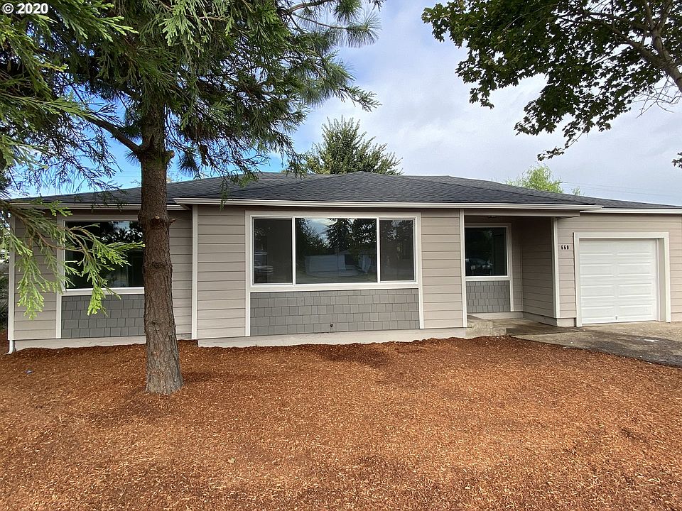 Move in Ready! Exceptional quality remodeled and updated three bedroom home with an attached garage and large fenced yard with fruit trees. Interior finishes have fresh paint, with new light fixtures, shaker style cabinets, SS appliances, new kitchen counter tops and flooring throughout. No detail spared. Top quality work done by Hyland Restoration. Brand new roof, siding, new exterior paint and vinyl windows. Ductless heat pump to keep you cool. Conveniently located near shopping and schools.