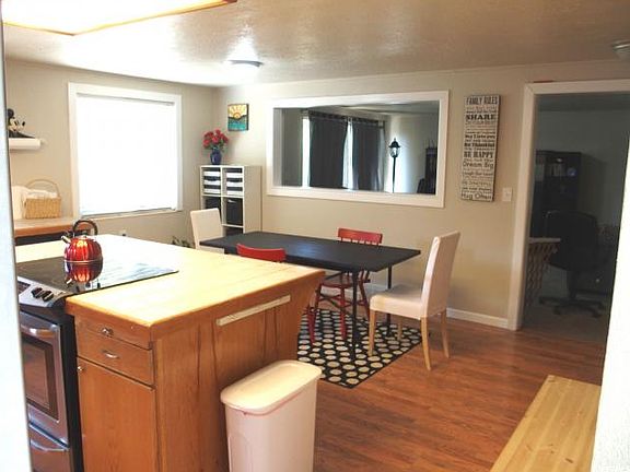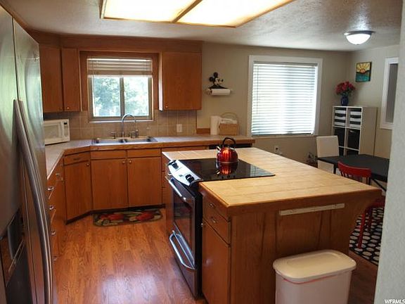 Cozy home with Large island and open updated kitchen. Bathrooms updated, Stainless steal appliances, wood lam. floor in kitchen, and very private. Could have two masters. One upstairs with walk in closet, and one in basement, or use it as a bonus room. Must have appointment, seller has dog and children and to find out where key box is located. Square footage figures are provided as a courtesy estimate only and were obtained from Assessors data. Buyer is advised to obtain an independent measurement.