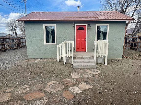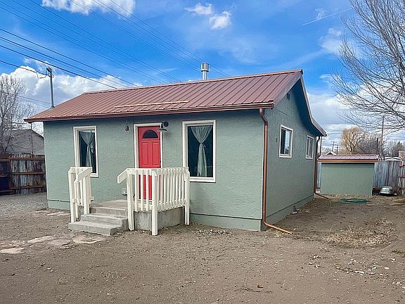 Charming single-family home, fully remodeled in 2021. 4 blocks from the Rio Grande River and Town Park in Del Norte, CO. 40 minutes to Wolf Creek Ski Area. Walkable to downtown restaurants and shopping. Quick access to multiple trail networks. Updated electrical and plumbing. All new windows and doors. Lots of natural light. New appliances including range, fridge, washer/dryer, cast iron gas stove and Rinnai on demand hot water heater. New flooring throughout. Antique sliding barn door adds stylish touch and space savings for bathroom/hallway. Metal roof with new gutters. Two storage sheds, one 56 sq. ft. and one 100 sq. ft. with customized interior shelving and workbench. New corrugated metal privacy fence and level gravel driveway. Find yourself at home in Del Norte, a quaint Colorado mountain town with year-round recreation!