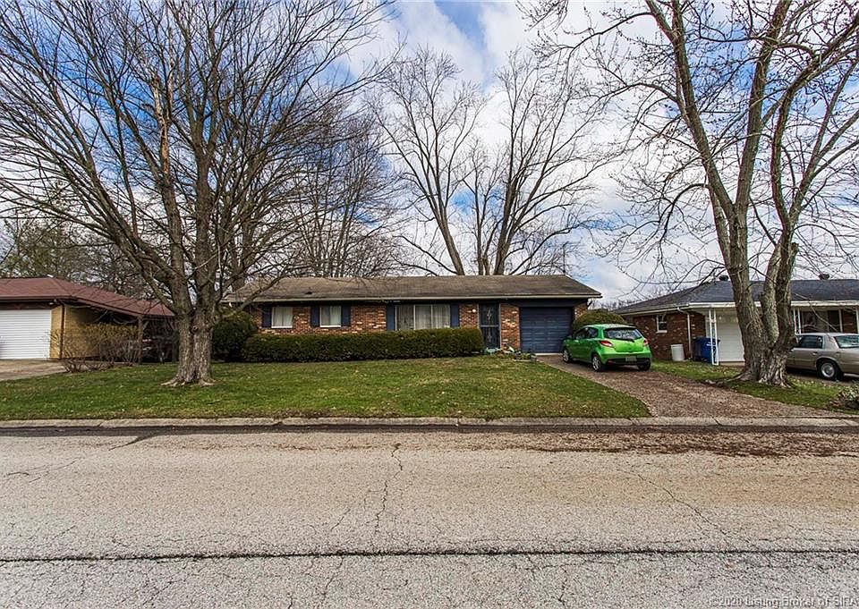 Welcome home to your Sellersburg home! Complete with basement and lots of basement storage under $150,000! 3 Bedroom 1 Bath with NEW HVAC, NEW Hardwood floors, NEW tiled bathroom. Well established neighborhood with mature trees, fenced in yard, COVERED patio, and attached 1 car garage. Book your showing now!