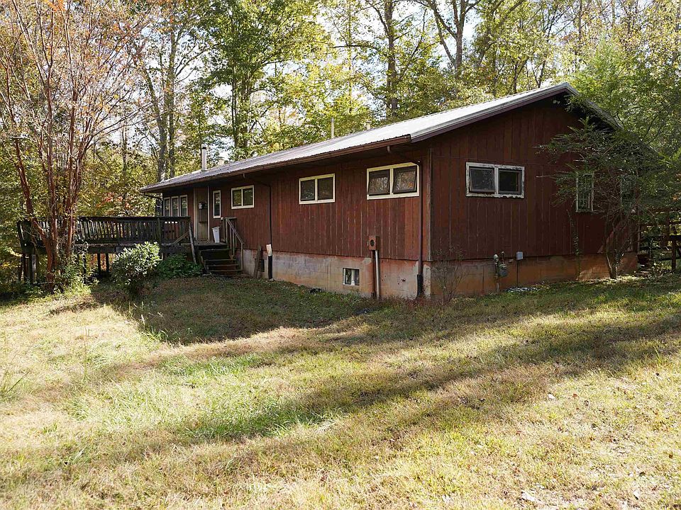 HUNTERS PARADISE in this SECLUDED 13.7 acre property with a 60x30 detached 3 bay garage with tons of loft storage, shop area + full bath. The home features a METAL ROOF and is ready for you to make it your OWN! HUGE LIVING ROOM with sliding glass doors that open to hear the trickle of the stream down below. HUGE MASTER SUITE with walk-in closet and dual vanities. FULL UNFINISHED BASEMENT is a great spot for all of your hobbies. The garage is a perfect autobody/machine shop or simply room for all of your toys! Sold in as-is condition.