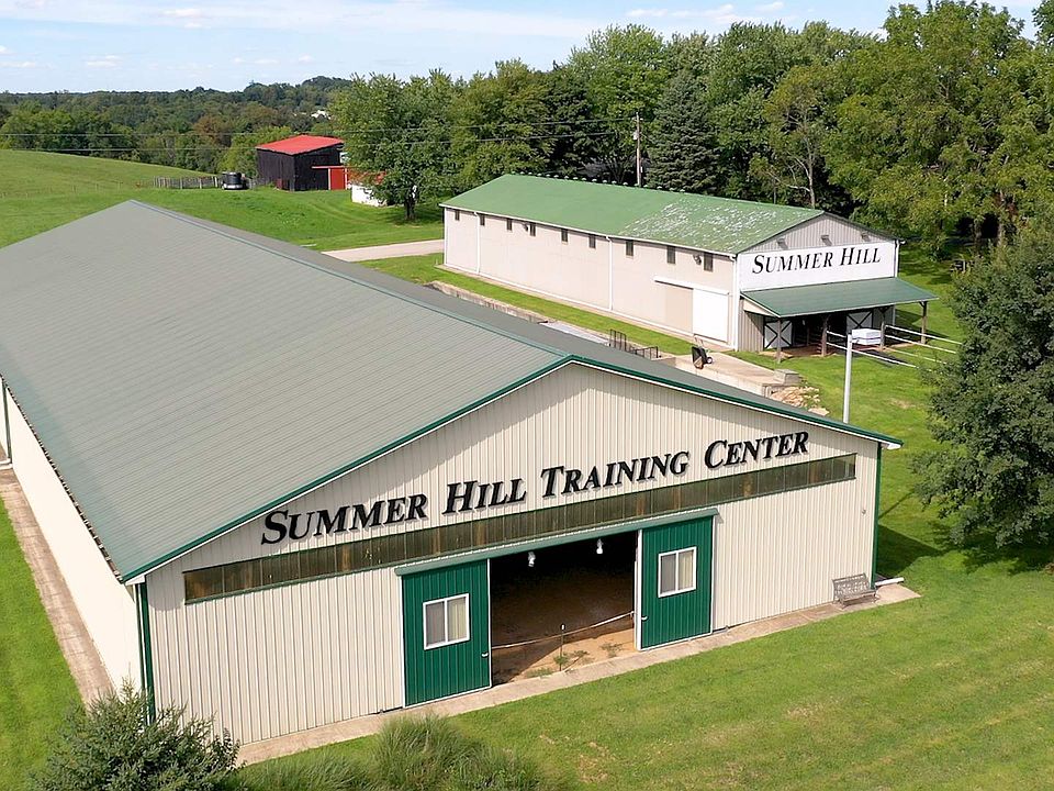 “Summer Hill'' has the best of everything . All brick 2 stry, 6 bdrms, 4 full baths on 1st floor. New designer Kitchen with custom cabinets, and Cambria counters, stone fireplace in living room and gorgeous 1st floor Master. Upstairs for expansion or man cave! New geo-thermal heat! Panoramic windows with spectacular views of mature trees and pastures with 4 board fencing. 12 stall barn w/ oversized stalls, hay storage, tack room, hot/cold wash rack all next to a 72x184 lighted indoor arena! Additional equip/hay barn w/concrete floors w/overhead doors! FAA grass landing strip, stocked aerated pond with fountain.