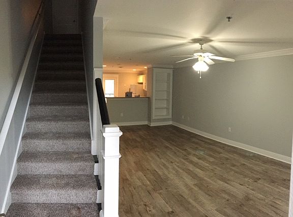 2 Bedroom, 2.5 Bathroom Townhome with hardwood floors downstairs and carpeted bedrooms upstairs. Plenty of closet space throughout. Washer and Dryer available in the unit. Perfect front patio views. All utilities are paid for by tenant (power, water, internet). Trash is onsite. Pool and pavilion available on property as well as access to city bus and campus, and the greenway.