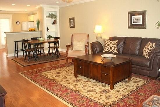 This 2 bedroom 2 bath end unit flat offers plenty of living space and has natural light filtering in on 3 sides of the unit. The unit is located near the pool in a quiet corner of Brookewood Mill. Unit features hardwood flooring in the living room, kitchen, and hallway. Bedrooms are carpeted and have private bathrooms 2 full sized closets each. All major appliances as well as washer and dryer are included.