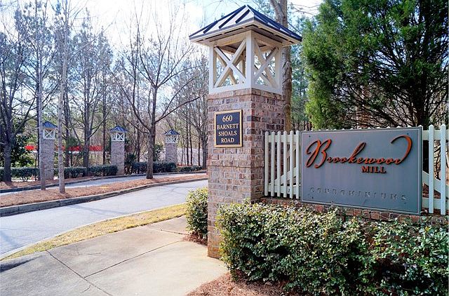 Perfect opportunity for a first-time buyer, investor, or someone looking to downsize. This Brookewood Mill condominium features two bedrooms, two full bathrooms, and one half bathroom. Bright living room features built-ins and hardwood flooring leading into the open kitchen with breakfast bar. Private balcony overlooks landscaped grounds and pool area with pergola. Each bedroom has its own attached bathroom and ample closet space. Several storage closets are located throughout the unit. Two parking spaces included. Call to see this one today!