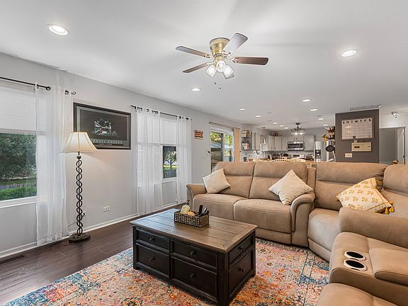Come see this beautiful move-in-ready one owner home in the sought-after Cambridge Lakes Community. Low property taxes $7801/year includes Homeowner exemption. Some of the features include luxury vinyl plank flooring, two-car garage, brick paver patio, spacious family room with large kitchen, which includes a movable island and pantry. Upstairs is set up for the largest of families with three bedrooms plus bonus room/loft which could easily be converted to another bedroom, two full baths and a second-floor laundry room round out the second floor. This home comes with a huge Master bedroom en-suite (20 x 20 feet) with a large walk-in closet. The home has the perfect apartment/in-law/guest arrangement in the basement with an additional full kitchen, (refrigerator, microwave, electric stove and sink) living room, bedroom and a full bathroom. Newer brick paver patio for your outdoor enjoyment and a fenced-in yard. Brand-new roof in 2023 with architectural shingles. This home comes equipped with solar panels by Blue Raven (transferable warranty included) making the owner's ComEd electrical bill only $15/month. The home has so much new! Brand-new flooring, carpet, furnace 2021, newer Samsung stainless steel appliances and washer and dryer. Cambridge Lakes is an award-winning community. Residents enjoy 360 acres of open space, including 12 lakes/ponds for recreational fishing, numerous park areas and approximately 5.2 miles of walking and bike trails. This active lifestyle community also includes baseball fields, recreation center with Olympic-sized pool and kids pool with waterslide, workout center with free workout classes, gymnasium, kids club and sport courts. There is so much to offer your family in this wonderful place to call home. Hurry this one won't last!