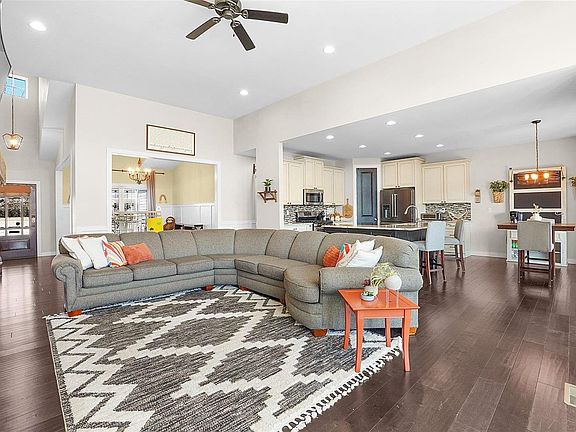 **Showings start Friday, March 7**. This craftsman style atrium ranch on almost 1/2 acre fenced lot will impress as soon as you walk inside! Great room features 12 ft ceilings plus floor to ceiling stone gas fireplace & opens right into the kitchen which has breakfast bar, walk in pantry, granite countertops, new dishwasher, and breakfast room which leads out to the covered deck (stairs to yard on side deck). The main floor has 8 ft panel doors plus 9ft ceilings throughout. Primary suite impresses with coffered ceiling, bay window and ensuite with separate shower/tub. If that's not enough, how about the grand staircase which leads to the finished walkout basement with 9ft ceilings, wood designed wet bar, family room with electric fireplace, theatre room, 4th bedroom, another full bath, plus storage area. You'll love the fire pit area in the backyard! This location can't be beat, close to both Highway K and Mid Rivers Mall Drive, and a quick golf cart ride into Cottleville. Agent owned. Additional Rooms: Mud Room