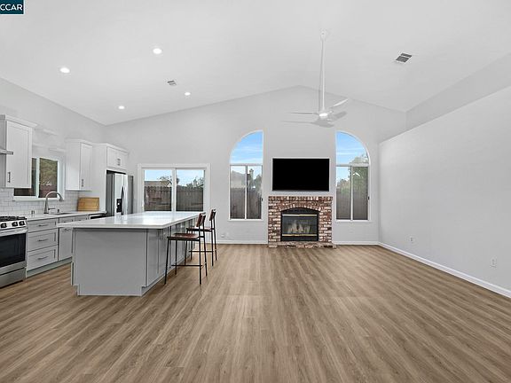 Welcome to your new home. This stunning single story at the end of a court is just what you have been looking for. This 3 bedroom, 2 bath, 1338 square foot home has been completely updated with beautiful materials. The kitchen features a huge island to seat the entire family. The kitchen boasts stainless steel appliance and a stainless-steel hood. Kitchen countertops are quartz and kitchen has a lovely subway tile backsplash. The updated and upgraded white kitchen cabinets set the mood in the kitchen. Nice neutral colored luxury vinyl flooring throughout the house. Both of the bathrooms have been updated with tile on the floor and in the shower over tub area. The remodel was permitted through the City of Oakley. Step out into your super-sized backyard. Two large patios for entertaining, possible side yard access, spa and shed stay. Oh, and another plus; No rear neighbors. Great for a first-time home buyer single or with kids. Open House Sunday June 2, 2024 1pm-4pm