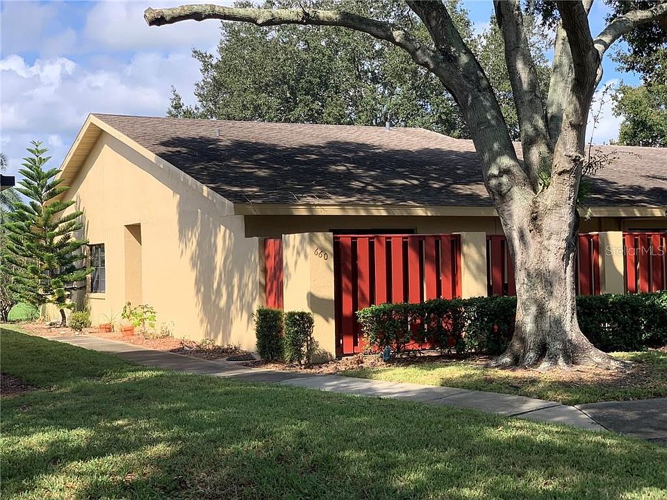 Cypresswood Villas on the Green. 2 Bedroom 2 bath townhouse with golf course views. Steps away from the community pool, clubhouse/restaurant, and putting green. 24 hour gated and guarded community. Master bedroom features an ensuite bathroom and sliding door access to front patio. A large great room combines the living area and dining area. 19x15 Bonus/Florida room is air-conditioned, has a ton of natural light or shades when privacy is needed. Washer/Dryer hookups are in the storage room located off the Florida room. Pest control services are included in the rent. Email agent for qualifications, application, community rules, and for showings.