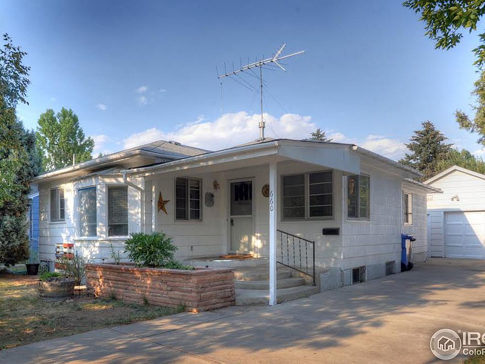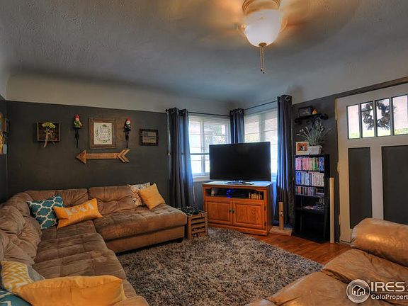 Great location between Loveland lake and downtown! Fresh exterior paint, covered front porch, large yard with alley access and an over-sized detached garage! Modern paint colors inside with classic tall coved ceilings, original hard wood flooring on the main level and in the 3 bedrooms. Large formal dining with bay windows, Open kitchen area with large pantry. Central A/C, finished basement with office, storage area and bedroom/bath. New hot water heater. RV Parking, storage shed & NO HOA!