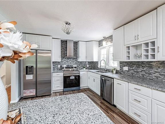 Please Submit Highest & Strongest Offers by 4pm on Sunday, June 12th. Remarkable is an Understatement! 5 BR, 2 Full Bath Raised Ranch on Almost an Acre of Land. Magnificent & Inviting Remodel - New Roof, Siding, Kitchen, Baths, Flooring, Doors, Deck and SO Much More. As you Enter the Front Door, you can sense the Light and Airy Flow of this Beautiful Home. The Kitchen is Astounding, & All New w/ Granite Counter Tops, SS Appliances w/ Alluring Range Hood, Fabulous Cabinetry, Island w/ Add'l Storage & Open to the Dining & Living Rm w/ HW Floors. Through the Dining Rm you can assess the Enclosed Sun Porch & Huge Deck. Full Bath on the Main Level is Breathtaking w/ Tile Floors, Full Tub/Shower Combo & Stylish Vanity. Completing the Main Level is 4 BR's w/ HW Flrs & Decent Sized Closets. The Lower Level Features a Front to Back Family Rm, A Second Full Bath, again w/ Stylish Features, A Laundry Rm w/ Utility Sink, and 2 Add'l Rms for you 5th Bedroom, an Office/Study or Playroom. A Whole House Fan helps keep the Home Cool in Summer. The Workmanship & Creativeness is Evident Throughout the Entire Home. The Driveway has been re-surfaced and wraps around to the Back of the Home for Additional Parking, or Park in Your Clean Garage! New Brick exterior Walkways have also been installed. Large Level Lot and a Huge Shed for all your Gardening or Yardwork needs. You will be Delighted to Call this Suffield house your HOME!