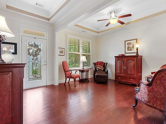 Welcome to your dream home in Soleil! This light, bright 3 bedroom, 2 bath Mansfield floor plan is nestled at the end of the culdesac and sets the standard in the neighborhood. This open concept home shows like a model. The custom concrete walkway and covered front porch featuring hand cut flagstone in earth tones welcomes you into this warm and inviting home. You enter into an open foyer and sitting room with trey ceilings from a double leaded beveled glass front door. The stunning home features high ceilings, deluxe crown molding and hardwoods throughout (including the bedrooms). Some of the additional upgrades include plantation shutters, large kitchen island with granite counter tops, stainless steel appliances, double ovens, walk in pantry, upgraded kitchen cabinets, floor to ceiling stacked stone fireplace with wall to wall built ins and an irrigation system. The large owners suite features tray ceiling and lots of light. You will love retreating to your large spa-like ensuite with extra large stepless walk-in shower, separate water closet, his/ her walk-in closets and double vanities. The laundry room with its tile floor can also serve as a mud room.. There’s additional storage beyond the laundry room and attic of the two car garage with epoxy flooring. Soak in the views of the beautiful evergreens and green space of your private backyard and common area from the enclosed 3 seasons patio. On some mornings, you may even be lucky enough to see a deer wander past! The exterior was painted in 2019 and the home is routinely and meticulously maintained. Amenities include 24/7 guard at the gate, 30,000+ sq ft clubhouse, zero entry lagoon pool, 8 tennis courts, fir pit, fitness center, indoor lap pool, billiard room, card room, theatre, library, arts and crafts center, gourmet teaching kitchen, banquet room, greenhouse and horticulture center, walking trails, lake with gazebo and amphitheater, pickle ball, bocce ball, social events, and more than 50 onsite clubs! Just move in and start enjoying the resort style living this award winning community offers! Contact listing agent Amy Pedersen at 404-932-8668 for more information.