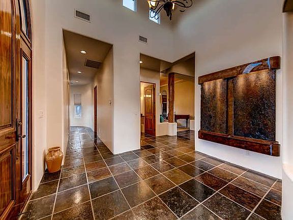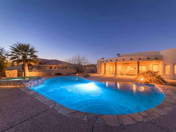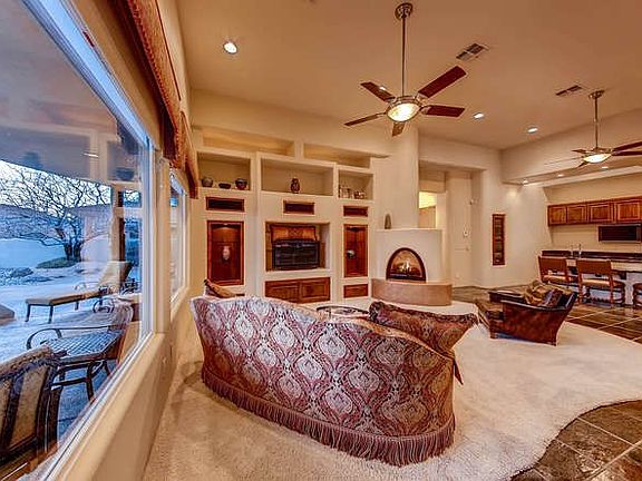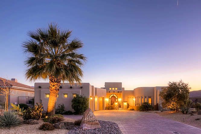 This gorgeous home on a spacious lot in the highly sought after LaScala community is sure to impress even the most discriminating buyer! You will be welcomed by a basket-weaved brick driveway; a large gated courtyard & a 9 ft custom carved entry door. And then greeted by a slate & copper fountain in the foyer & a wall of windows offering views of the Virgin Mountains & a stunning heated swimming pool; hot tub; & built-in BBQ area. Huge covered back patio with a built-in heater for winter evenings; a variety of fruit trees & a lawn. A beautiful, full gourmet kitchen with granite counter tops; Wolf/Sub-Zero/Bosch appliances; wine refrigerator with two chilling drawers; cherry wood & a huge walk-in pantry. A wet-bar has its own refrigerator and dishwasher plus an inviting sitting area for guests. Attached, secluded casita has its own separate courtyard access. 4 bedrooms (inc the casita); 5 bathrooms; formal dining room or den; his/her walk-in closets; laundry room with sink; 3.5 car garage (1225 ft). Slate & carpet flooring; central vac; surround sound throughout (inc patio & pool area). The architecture & level of detail are elevated to rival the finest standards.