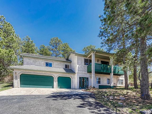 This beautiful home is situated on a gorgeous treed lot in the desirable Woodmoor neighborhood. It is a 3 bed, 3 bath, 3 car garage, walk-out ranch home. Hardwood throughout main floor, spacious family room w/fireplace, vaulted ceilings and your very own private backyard patio. Updated gourmet kitchen, impressive island with hood, plenty of counter space, large pantry and laundry room. Formal dining room with amazing mountain views, master bedroom, french doors, walk in closet, 5-piece bath and walk out private deck area. Downstairs you will find a large recreation room, big bright windows with walk-out access, wet bar, free standing stove for our cool Colorado nights, a full bath and 2 bedrooms. The private backyard is great for entertaining or to enjoy the beautiful outdoors. The 3 car garage has 2 access points into the house, extra storage under the stairs, storage cabinets, bicycle storage lift system, and ceiling storage systems as well. Gutter guard has been installed to keeps out the pine needles, fenced in backyard, 2 storage units, 2 rain barrels, bird bath and an invisible dog fence. Located within the award winning D-38 schools district. Close to shopping, restaurants and I-25. Easy access to Colorado Springs, Denver and to the mountains! HOME IS READY FOR QUICK CLOSING AND MOVE IN!