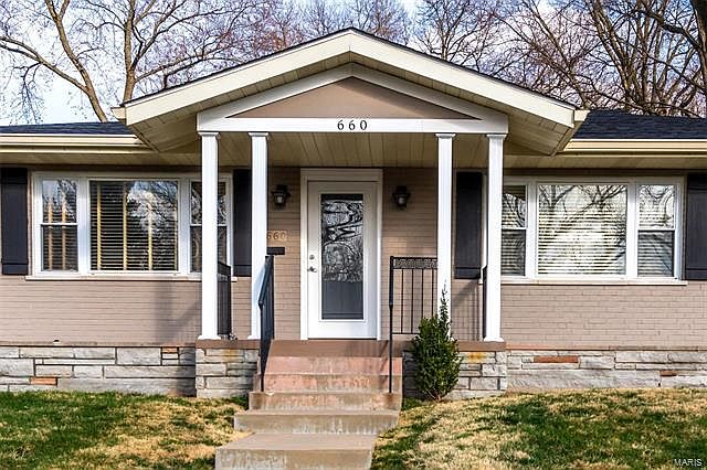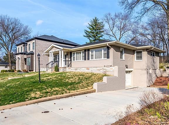 MUST SEE 4 bedroom, 3 full & 1 half bathroom mid-century modern ranch in Clayton! This stunning home has an open floor plan with a great flow! You walk into the living room, through to separate dining room, on your right is the chef inspired kitchen with custom cabinetry, granite countertops, stainless steel appliances, updated fixtures & hardware. Past the kitchen, you walk into the great room with 11 ft floor to ceiling windows & unique 11 ft marble wood burning fireplace. Hardwood & custom tile flooring throughout. Luxurious master suite addition with spa-like bathroom, features step down shower! Exquisite wet bar with wine cooler & more custom cabinetry outside of master suite. 3 more large bedrooms & 2 more full baths on main floor. Finished walk-up basement with large entertaining area, wetbar, & 1/2 bath. The backyard features a peaceful zen garden & plenty of green space to relax and enjoy the St. Louis summers. Main floor laundry. 2 car tuck under garage, AAA Clayton Schools.