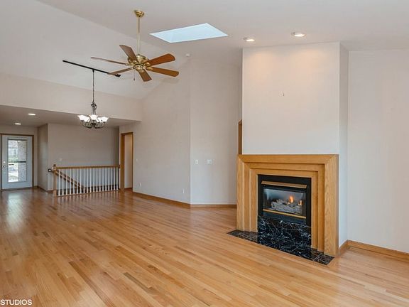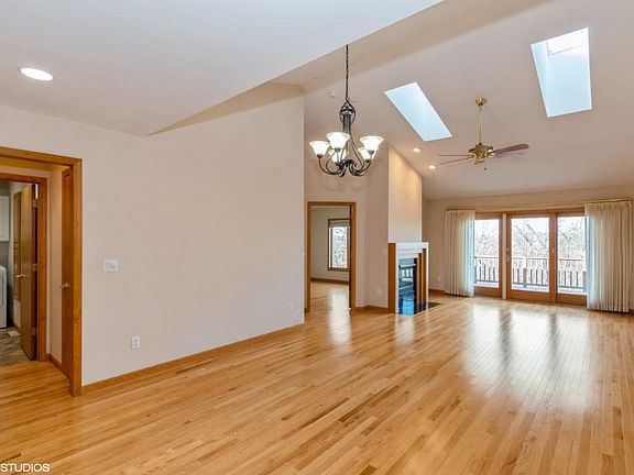Spacious and bright 4 bed, 3 full bath East side condo with lots of luxe details, located on a quiet cul-de-sac. The striking living area features a cathedral ceiling with sky lights, beautiful wood floors, gas FP and huge windows overlooking a private wooded ravine. Upgraded kitchen includes cathedral ceiling, high end stainless steel appliances, lovely quartz counter tops & backsplash, tons of cabinets & a seating area. Sliding door leads to a serene 3-seasons porch with sky lights, tile floor, and a sizable deck. Ample primary suite has a cathedral ceiling, large walk-in closet, bath with double sinks. 2nd BRM currently used as an office & has elegant oak built-ins. Large walk-out LL with wet bar that has quartz counter tops, 2 sun-lit BRMs, expansive FR with built-ins & gas FP, 3rd bath with soaking tub & shower, and plenty of storage space. Main floor mud room/laundry includes large laundry tub and built in ironing board. Plenty of shelving in the 2-car garage. Near schools, restaurants and shopping.