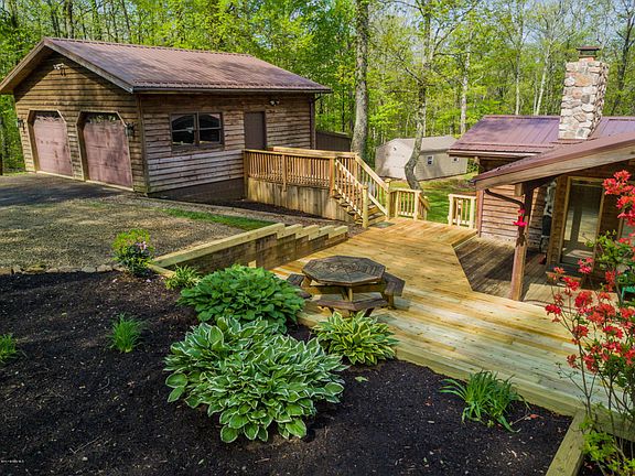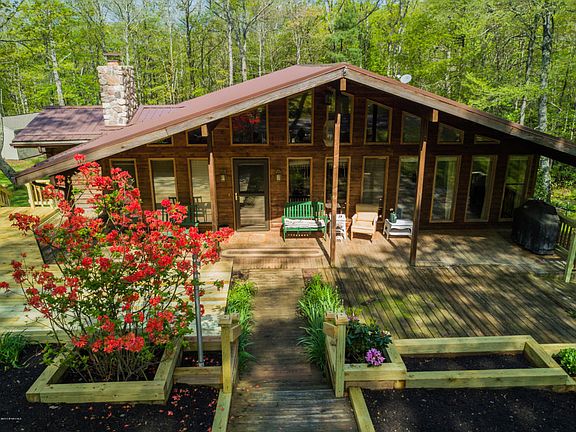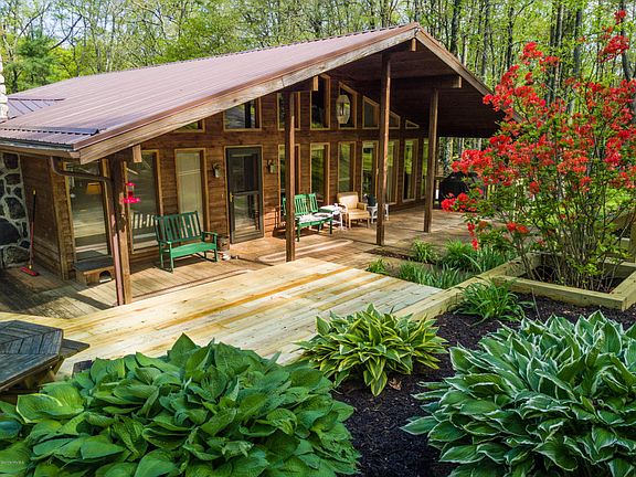Beautiful custom built home with hard wood floors contemporary with a rustic feel.Enjoy the wildlife, birds and quiet while sitting in the atrium-covered deck over looking the private back yard. The home is efficiently equipped with an electric heat pump with back up propane furnace for cold nights. There are also two pellet stoves, one in the family room area and one in the basement. A back up Generac Generator will power the entire home in the event of power outage. A working newer hot tub is located off of the den in the fully finished walk out basement.There is a 24x24 two-car garage that can double as a workshop with a tractor shed attached. There is also a 14x22 shed with electricity in the back. click on photos and then click on ''video (1)'' to see video tour.