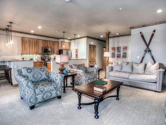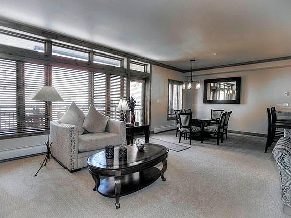 The unit is 1578 square feet and can accommodate up to eight persons. The master bedroom has a king bed, television and a queen sleeper sofa - as well as an ensuite bathroom with walk-in shower and granite countertops. The guest bedroom features two queen beds, television and a village view. The guest bathroom is located between the second bedroom and the living room and has a walk-in shower and granite countertops. The living room has partial mountain and village views. There is a gas fireplace with river rocks, large screen television, and queen sofa sleeper. The kitchen is equipped with stainless steel appliances, granite countertops, and has dishes, glassware, utensils and cookware. There is seating for six at the dining table and seating for an additional two at the kitchen counter. The deck has a gas grill and a private staircase to access the ski yard and Lionshead village. Lion Square Lodge amenities include hot tubs and heated outdoor pool with changing rooms, fitness center, concierge, ski valet, restaurant, daily housekeeping, free parking, and walking distance to local bus transportation. 215 is a Superior two bedroom, two bathroom condominium located in the East building.
