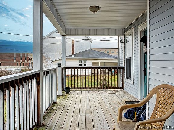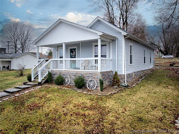 Home was remodeled in 2019! The home sits in the heart of Charlestown with a beautiful view of the city park! Enjoy relaxing on beautiful front porch! The home also offers a covered back porch. Roof, siding, gutters, storm windows, porch, deck, covered rear porch, water heater and HVAC. Spray foamed dry cellar provides additional storage. All completed in 2019. Being sold as is.