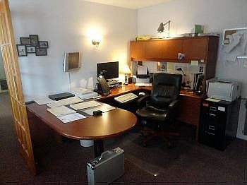 Completely remodeled building with updated kitchens, baths, floors, windows, roof & heating system. Great office space on 1st floor; 2 great apartments above. All units have washer & dryer. Plenty of parking; Move right in!