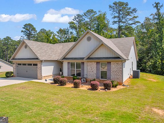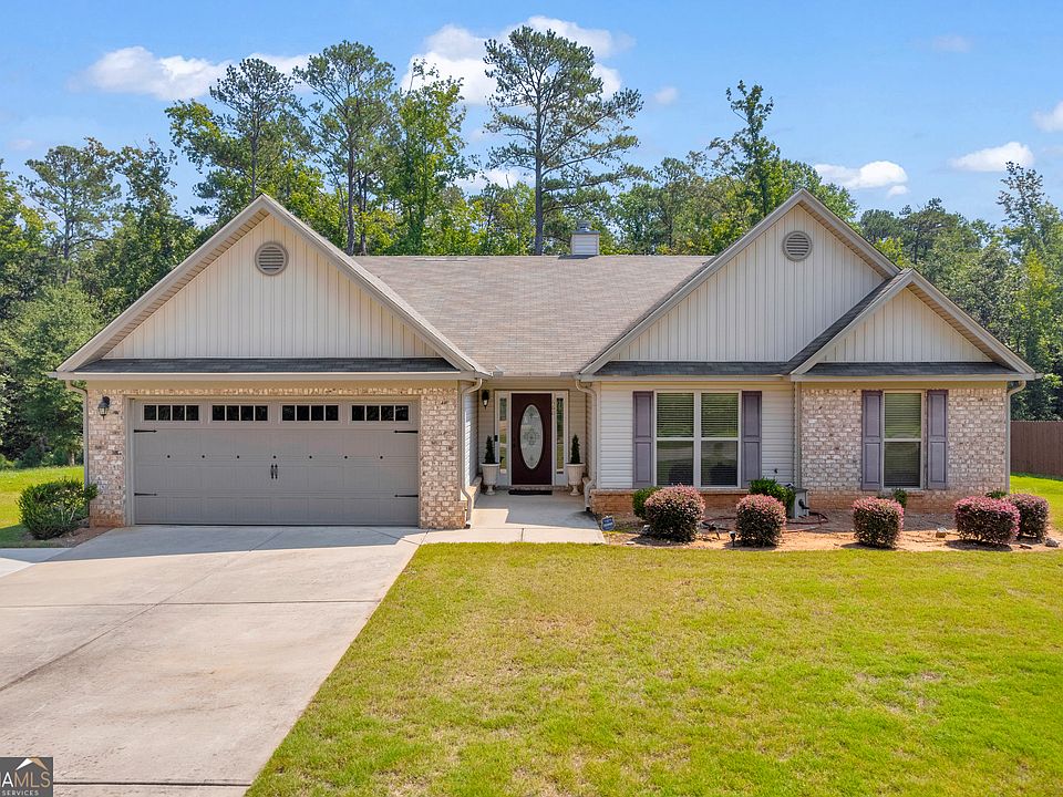 This charming ranch-style home has plenty of space, sitting on 0.89 acres. With 4 bedrooms and 2.5 bathrooms, it's designed with an open floor plan and vaulted ceilings that make the living areas feel bright and welcoming. The living room features a cozy brick fireplace, and the kitchen is a true centerpiece with a big island that has a breakfast bar, and tons of cabinet space. There's also a sunny breakfast room plus a separate dining room that could easily double as an office or playroom. The primary suite offers a relaxing retreat with its own bathroom that includes a double vanity, soaking tub, and separate shower. Three more bedrooms provide plenty of space for family, guests, or hobbies. Step outside to enjoy a backyard patio surrounded by stone walls, perfect for barbecues or relaxing evenings. The 2-car garage and expanded driveway make parking easy, whether you're hosting or just need extra space. Make this one yours today!
