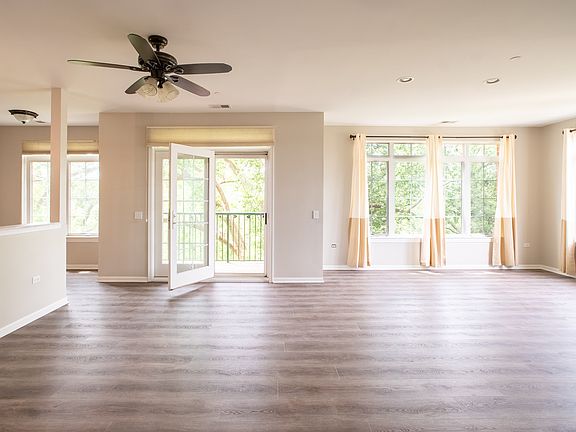 Deluxe, sunny and spacious, more than 2000 square foot corner unit, one of the largest in complex, with free broadband internet, cable and wifi included. Luxury 2 bedroom 2 bath on 3rd floor. Beautiful open floor plan with 9' ceilings. Kitchen features 42'' maple cabinets, hardwood floors, and pantry providing plenty of storage space ~ Island with breakfast bar and 2d sink ~ Separate Dining Area opens to Living Room with Huge Windows. Patio Doors lead from kitchen and living room to two separate large balcony areas with privacy and gorgeous natural views of park area. Master suite features two large walk-in closets. Master bath with double sinks, soaking tub, separate shower and 2 closets. 2nd bedroom also has large walk-in closet. Also large double closet at entryway. In-unit laundry room with additional utility storage. Your own heating and cooling system. Elevator serves both lobby with coded security entry and heated underground parking garage with private storage unit. Rear of building just under your balconies features quiet wooded green space with walking paths and gazebo, abutting Wheeling's 12 acre Childerley Park with sheltered pavilion, small historic church for events, beach volleyball courts, two play areas and more paths. Close to I-294, IL-53 S/I90 corridor and the Wheeling Metra Stop. Just blocks from the new Wheeling Town Center campus with its recreation and aquatic centers, theatre and entertainment venues, and other high end attractions. Also Lake-Cook Rd. retail w/Super Target, Walmart and more retail just blocks away. Owner pays water and internet; tenants pay electric and gas. Pet fee $50 per month, negotiable, $150 pet deposit nonrefundable. $300move in- move out fee. $200 refundable and $100 nonrefundable.