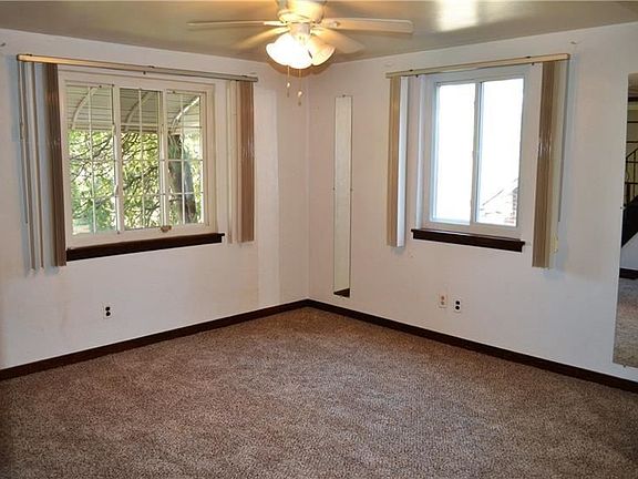 Sweet clinker brick home is larger than it looks. 22' living room with decorative fireplace, dining room that's open to kitchen. Enclosed porch off kitchen. 22' master bedroom with double deep closet. Newer (2019) carpeting in living and dining rooms. Interior French drains and 2 sump pumps in basement and garage installed by Advanced Basement Solutions August 2019, who also treated garage mold. Property conveyed "as is."
