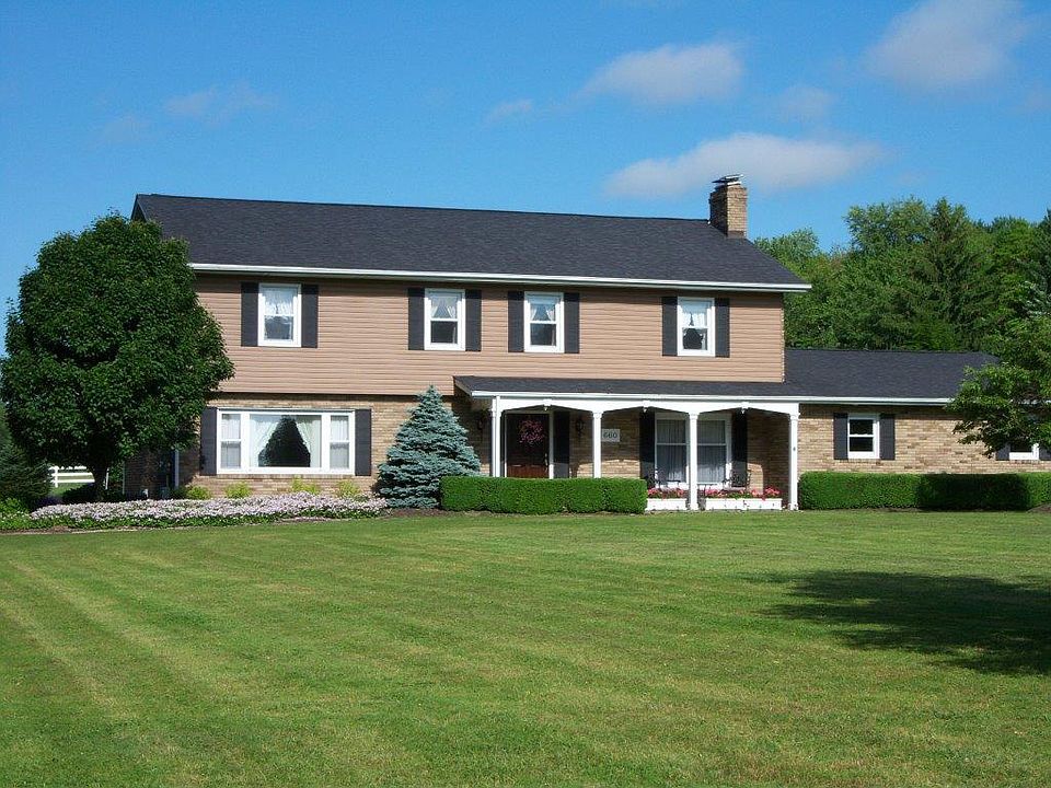 Beautiful, spacious home in Meridian situated on 4.86 acres w/ two barns.4 Bedrooms,3 baths,a formal living room and dining room, eat in kitchen with ample cabinet and counter space, sizable family room, and a two car attached garage. Enormous master suite with double closets and an en suite bath. Enjoy the peaceful setting and gorgeous sunsets from the rear patio. This well maintained property has a newer roof(2009),hot water tank(2014), and central air(2009). 25 mins to Cranberry, 45 mins to Pittsburgh