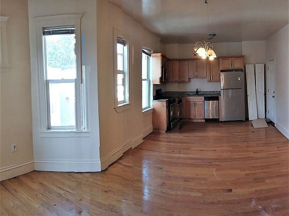 Sunny, spacious, 2 bedrooms 1 bath on the first floor of three-family. Features hardwood floors, eat-in-kitchen, living room, ample closet, and storage space. Tons of area amenities, restaurants, shopping, public transit, laundry, etc. Walk Score 77 + Transit Score 60 + Bike Score 58. Utilities are not included. First, Security, and Broker Fee required. NO SMOKING, NO PETS. REFERENCES, CREDIT AND BACKGROUND CHECK REQUIRED. 650+ Credit Score preferred. No prior evictions.