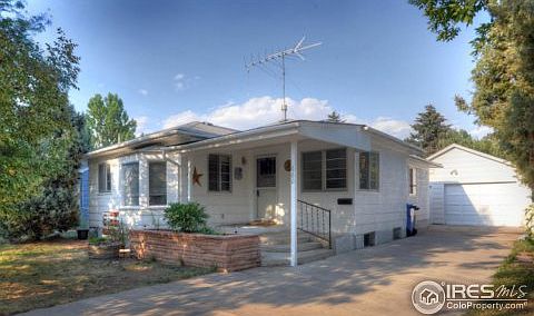 Great location between Loveland lake and downtown! Fresh exterior paint, covered front porch, large yard with alley access and an over-sized detached garage! Modern paint colors inside with classic tall coved ceilings, original hard wood flooring on the main level and in the 3 bedrooms. Large formal dining with bay windows, Open kitchen area with large pantry. Central A/C, finished basement with office, storage area and bedroom/bath. New hot water heater. RV Parking, storage shed & NO HOA!