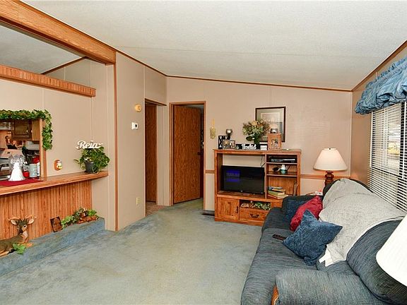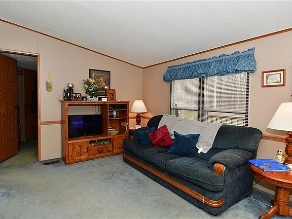 Country living, privacy, five acre + wooded lot at the top of the hill and a view that goes for miles, sound good? Well this property is for you. The three bedroom split floor plan, two full bath, eat-in kitchen, hardwood flooring, pantry plus laundry room, new carpet, vinyl flooring, new water heater, HVAC stove and fridge 3 years old and new well water bladder just to start. Low maintenance vinyl siding, wood decking for sitting, detached two car garage, large gravel driveway and so much more to offer in this manufactured home, come see.