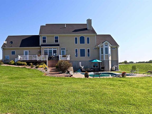 Custom built 1st flr master bedrm step free home w/6 beds/5 bath's on 18.72 acres! Energy efficient geothermal heating/cooling system/salt water in ground pool, 2 tiered composite deck, stone/hardy board exterior, partially finished LL w/9 ft ceilings & walk out. Gourmet eat in kitchen w/commercial monogram gas cook top w/grill, quartz counter tops, hand scrapped hickory flooring & custom cabinetry. Ultra master suite & master ba w/soaring ceilings, double walk in closets, oversized custom tiled shower & jetted tub. Iron staircase w/balcony, direct access kids baths to private baths.