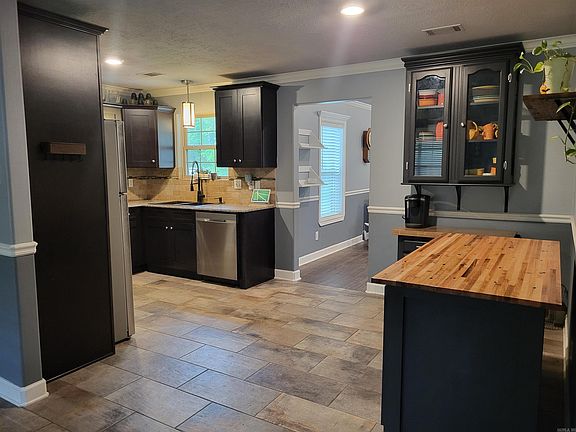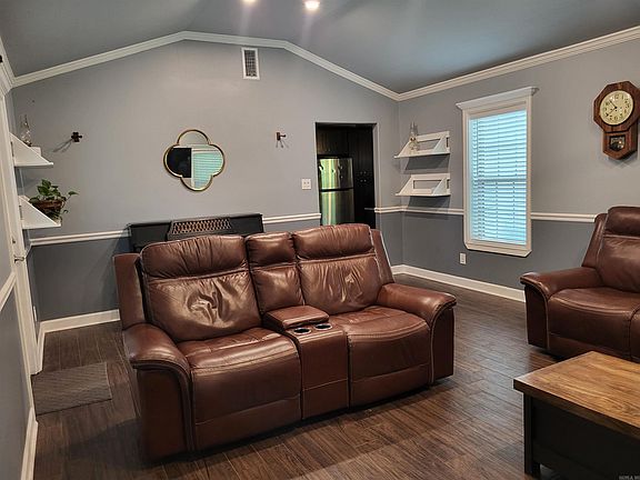 3 Bed, 2 bath home with large yard in quiet, rural subdivision. Two car garage. Tile and hardwoods throughout home. Large living area with vaulted ceiling added on in 2022. Vaulted ceiling in original living are with wood burning stove. Property is in cul-de-sac with minimal traffic. Backyard is fenced (partial privacy, partial chain-link). Large side yard included with property, great for gardening or large play area. Includes metal carport in backyard for storing yard tools. Roof replaced 2022, new AC unit in 2023. Kitchen includes stainless oven, microwave, and dishwasher. Refrigerator does not convey. Shelves throughout home do not convey, along with roll around island and china cabinet. Raspberry bushes do not convey. Great neighborhood and amazing schools in Cabot School District.